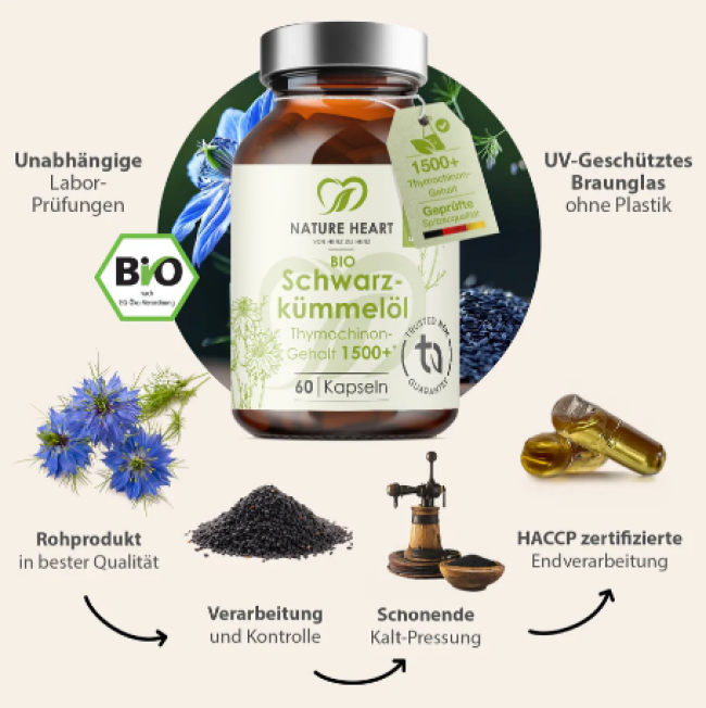 ✔ Thymochinon Gehalt über 1500+ (bestätigt durch Analyse)